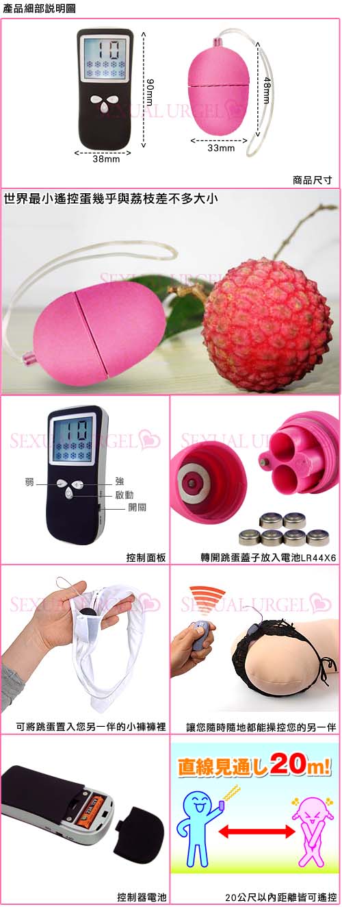.使用電源:跳蛋:LR44號電池X6;遙控器:23A-12Vx1