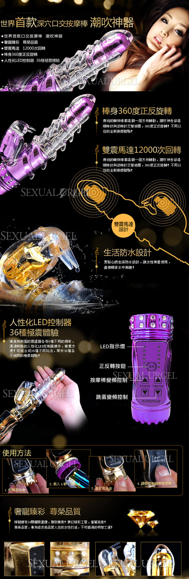 同時棒身可360度正反旋轉,配合無極震盪,