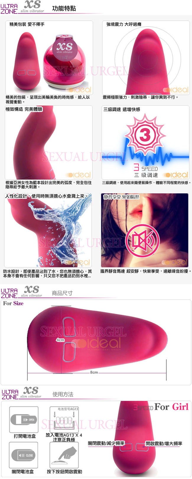 .商品名稱:美國Ultrazone-茜思拇指戀 陰蒂按摩器-桃紅 *1