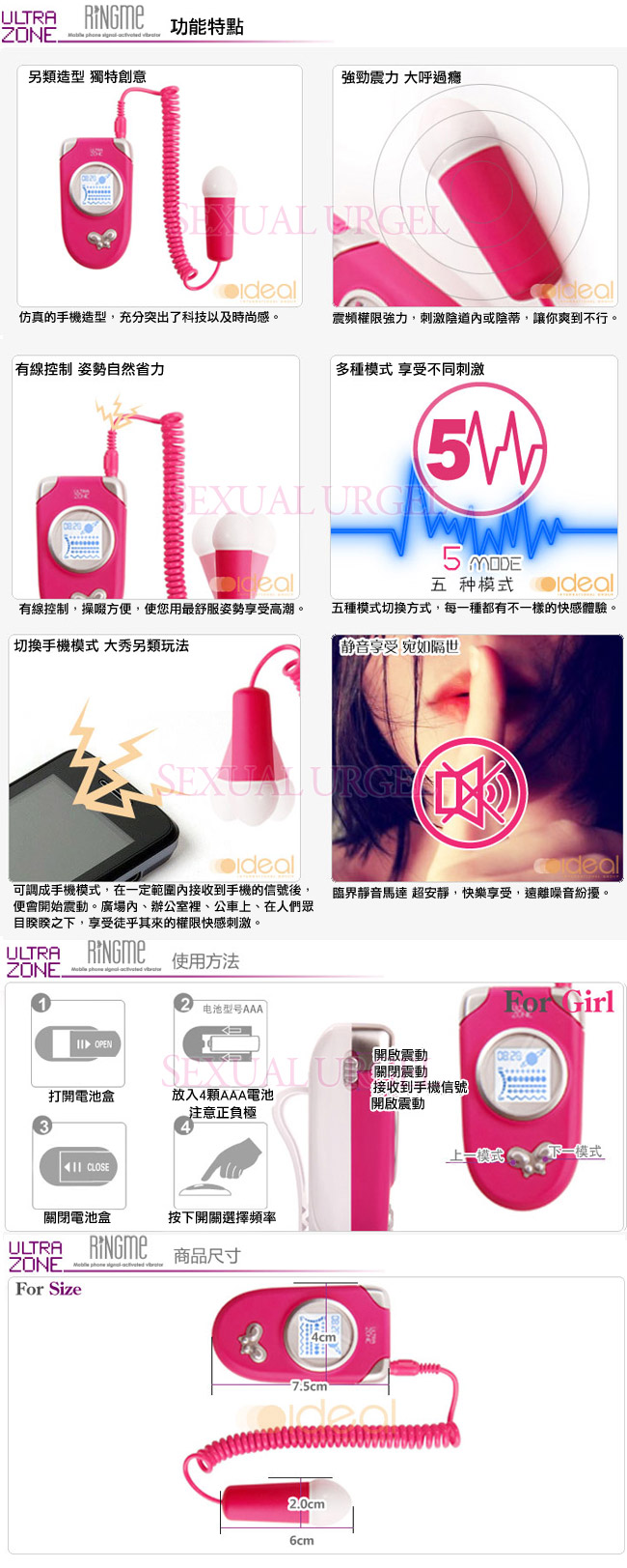 .主商品:美國Ultrazone-Ring Me 情慾熱線 5段變頻跳蛋-桃紅*1