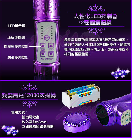 12速變頻震動,6速伸縮+迴旋滾珠!最新潮的多種刺激模式,旋轉速度更加人性化,使用時微調更精確,無懈可擊!
