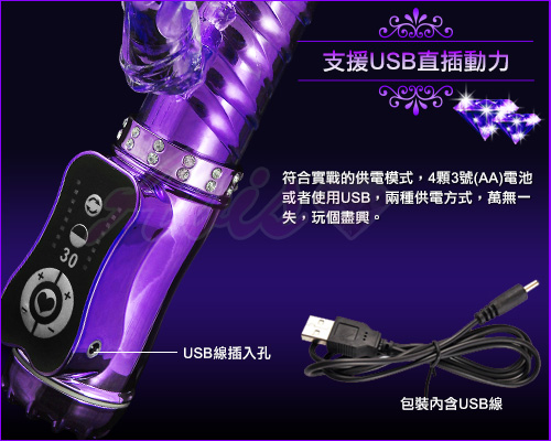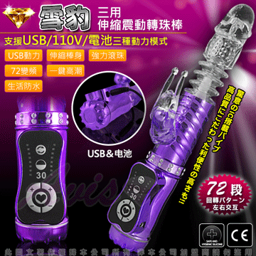 雪豹突擊-電池/110V/USB 三用頂級多功能滾珠按摩棒-紫