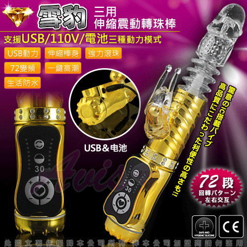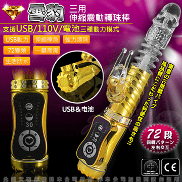 雪豹突擊-電池/110V/USB 三用頂級多功能滾珠按摩棒-金