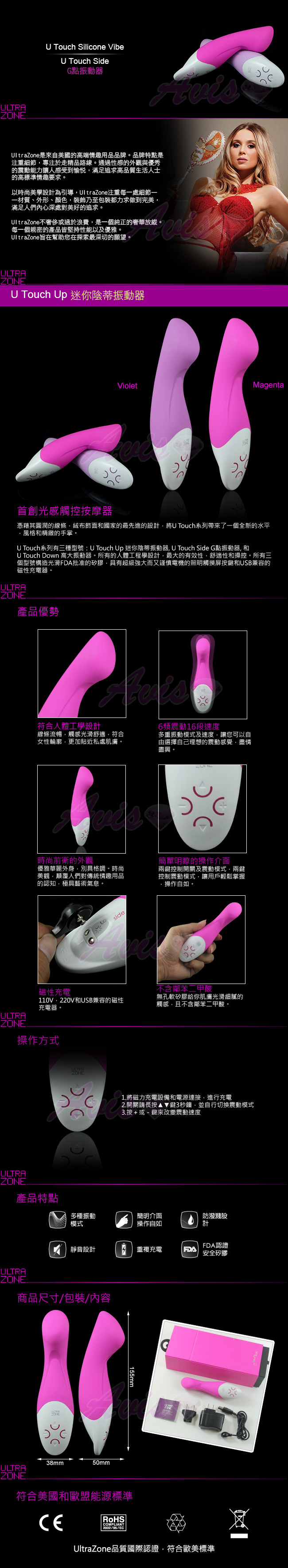 美國Ultrazone-U-Touch Side 光學觸控按鍵 磁吸式充電 6段變頻防水G點挑逗棒-紫
