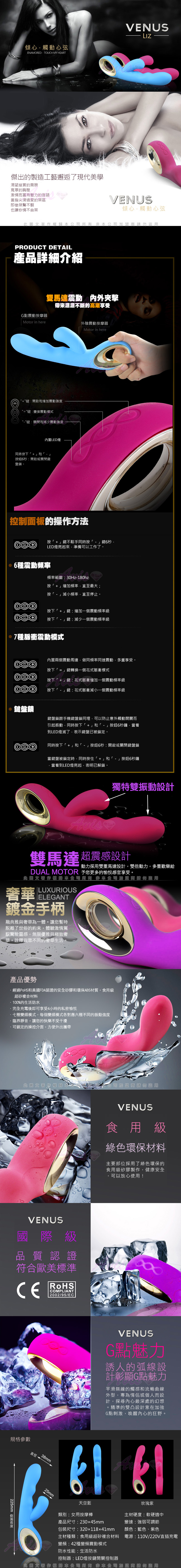 .主商品:LIZ-多功能雙震動 時尚精品智能按摩棒-天空藍  *1