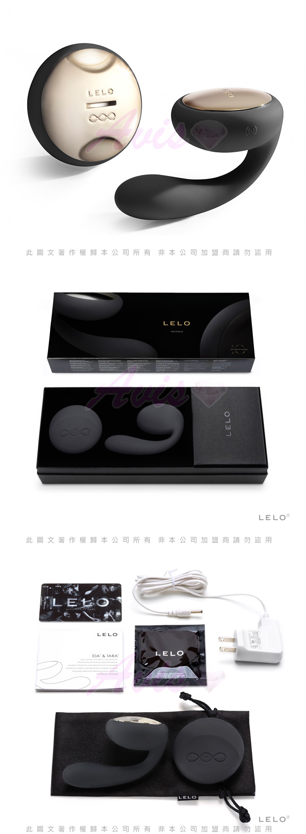 .主商品:瑞典LELO-IDA 伊達 旋轉尾翼遙控情侶共振按摩器-公爵黑