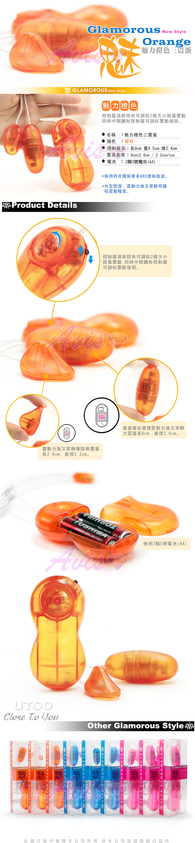 商品名稱:香港UTOO-魅力多震蛋(L+SP外陰震蛋)-橘