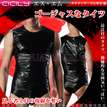 虐戀精品CICILY-格鬥教父-男式塗膠仿皮 背心連體衣