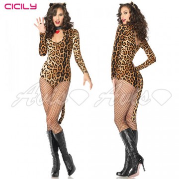 .主商品:虐戀精品CICILY-豹紋情慾-豹紋深V美胸塗膠仿皮性感彈力 膠衣*1