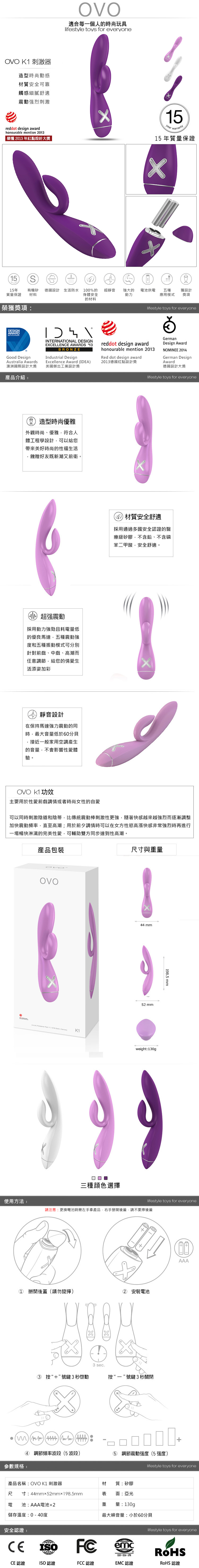 .主商品:德國OVO-K1 拳擊手艾倫 5段變頻 多功能 雙叉 震動按摩棒-紫色X1