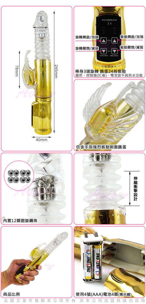 .商品名稱:第二代-鳳凰天使-72段 電鍍款(伸縮式)變頻滾珠G點按摩棒-金*1