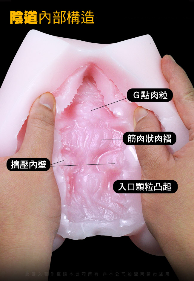 陰道裡採用多種複雜曲線設計,完全模擬真人陰道的彎曲度。