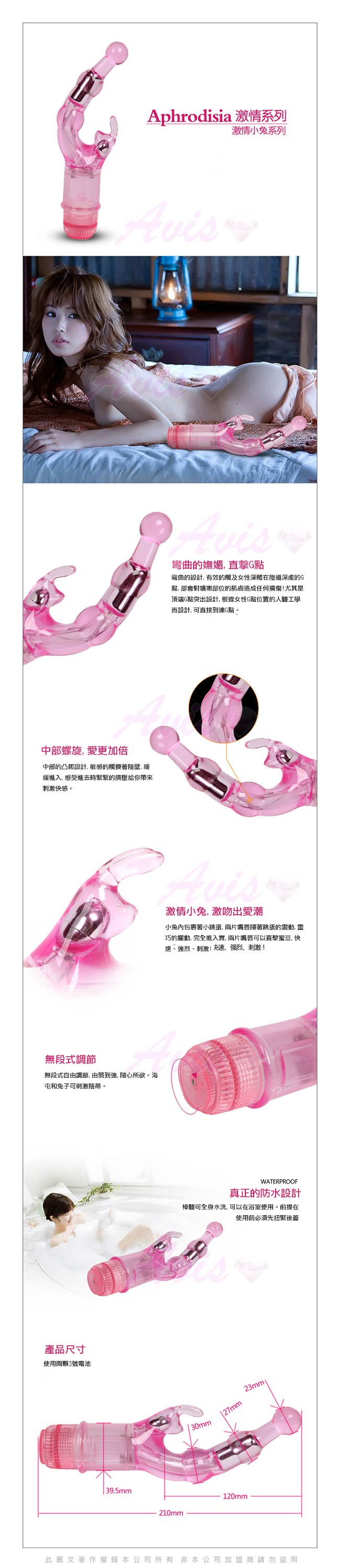 .商品名稱:APHRODISIA 冰晶之兔 雙G點高潮電動按摩棒-紫 *1