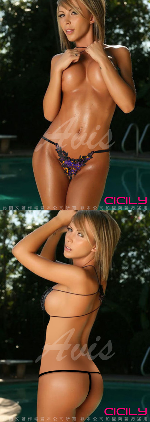 CICILY 紫夢蝶影 刺繡花邊 情趣丁字褲 黑