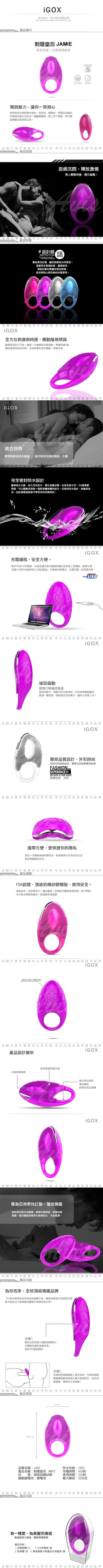 .商品名稱:香港IGOX JAMIE 刺環皇后 JAMIE 20頻 男用震動環 USB充電 魅紫*1