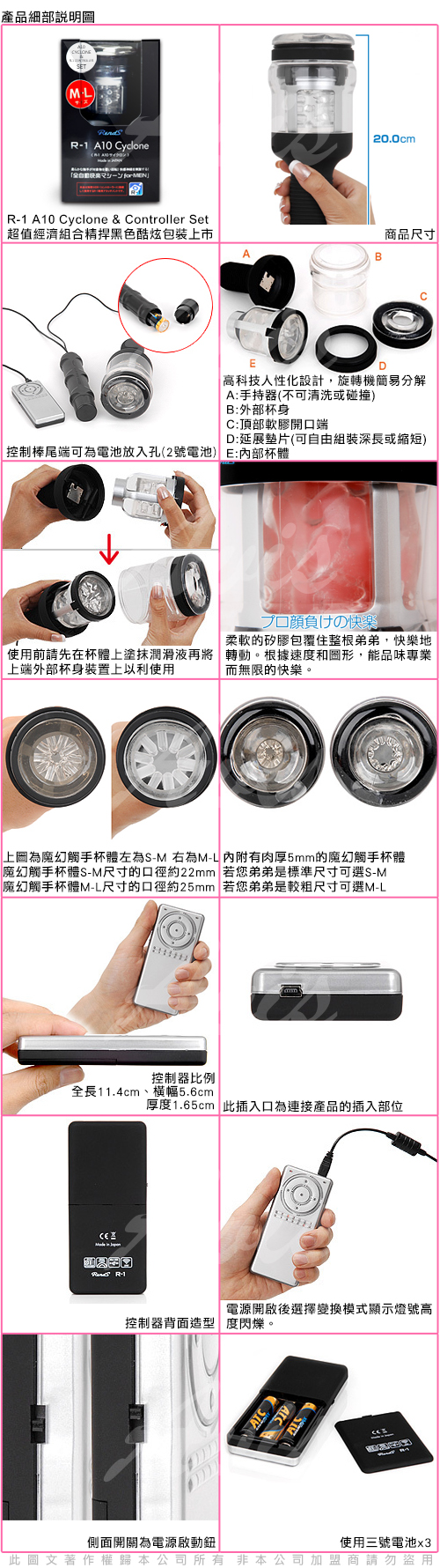 .商品內容:R-1+A10猛男超值優惠組M-L款(R1控制器+A10-CYCLONE超高速迴轉電動旋風強轉機) X1