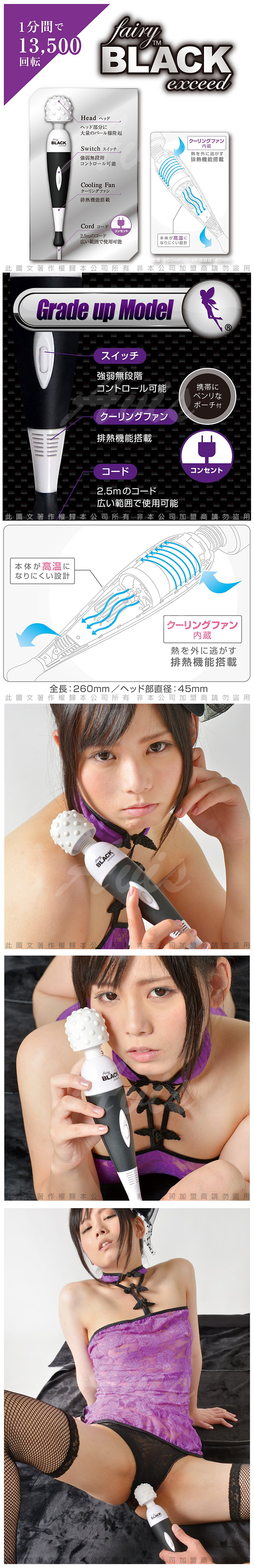 .商品內容:日本FAIRY EXCEED 第七代 渦輪型排熱機能AV女優按摩棒(大凸點13500轉) 黑 刺激強力型 X1
