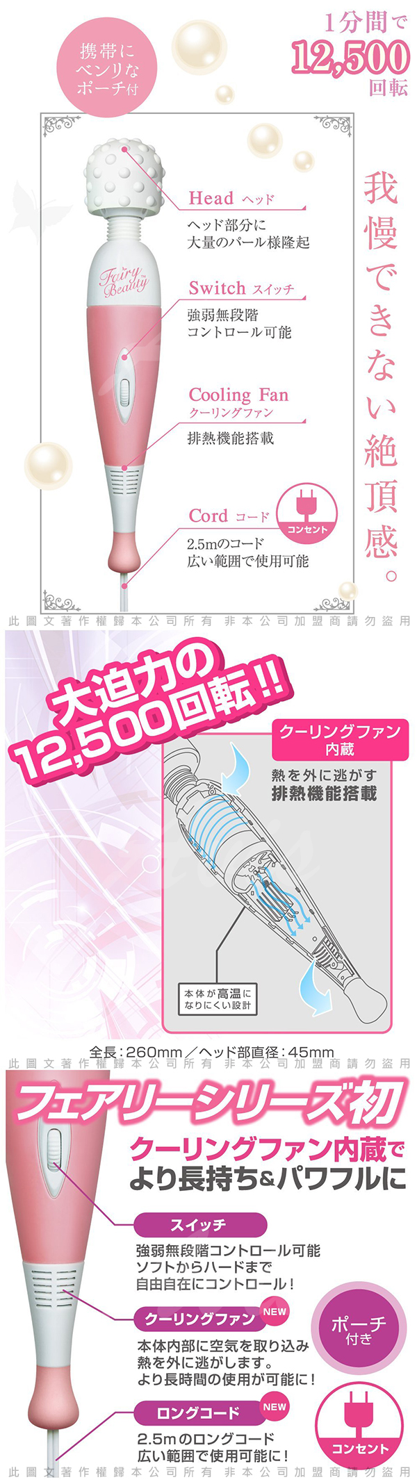 .商品內容:日本FAIRY BEAUTY 第七代 渦輪型排熱機能AV女優按摩棒(大凸點12500轉) 粉 X1