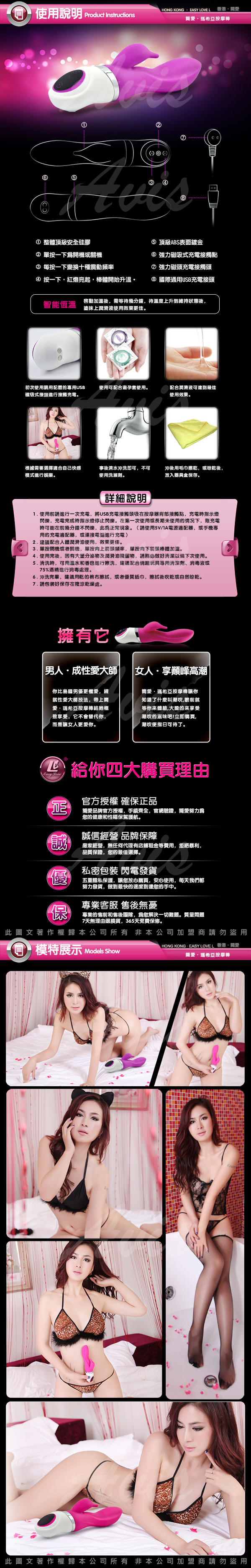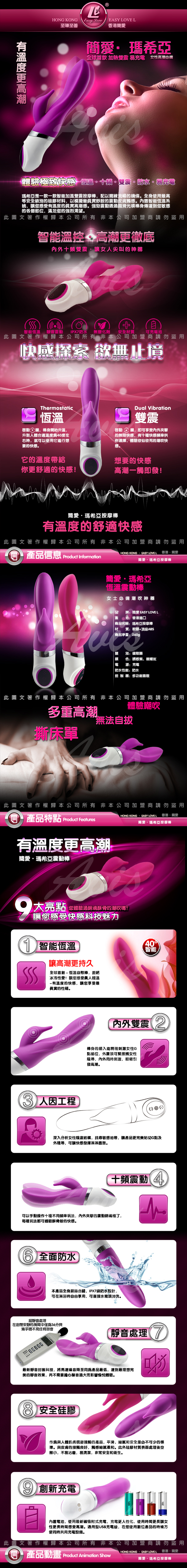 .商品名稱:MARCIA 瑪希亞 智能恆溫 10段變頻 雙震G點按摩棒 USB磁吸式充電 紫  *1