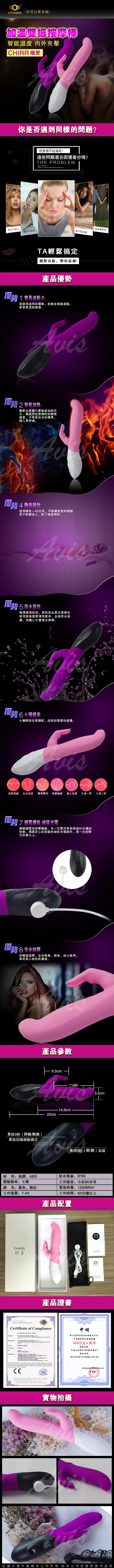 .商品名稱:OTOUCH 熾愛 CHIRR 7段變頻 智能加溫 雙震 G點震動調情按摩棒 磁吸充電 紫