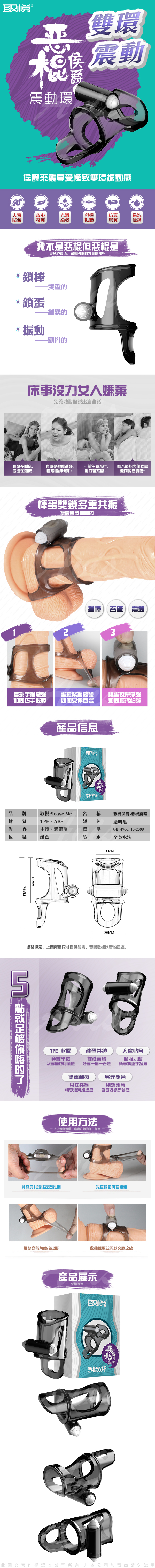 名稱:惡棍侯爵 震動矽膠鎖精雙環 惡少雙棍