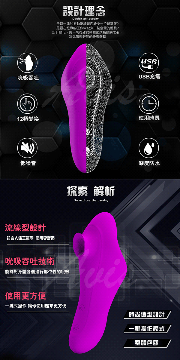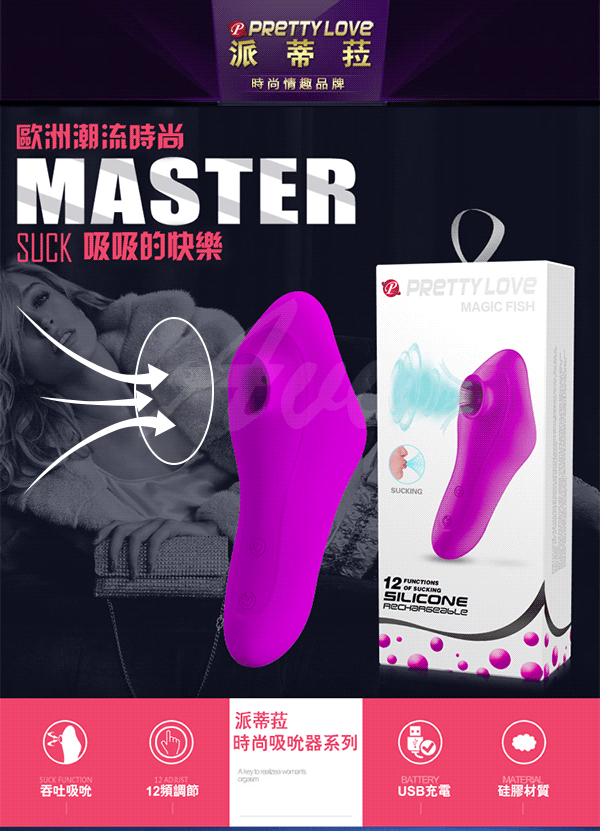 .商品內容:PRETTY LOVE MAGIC FISH 12段變換吮吸USB充電吞吐按摩棒