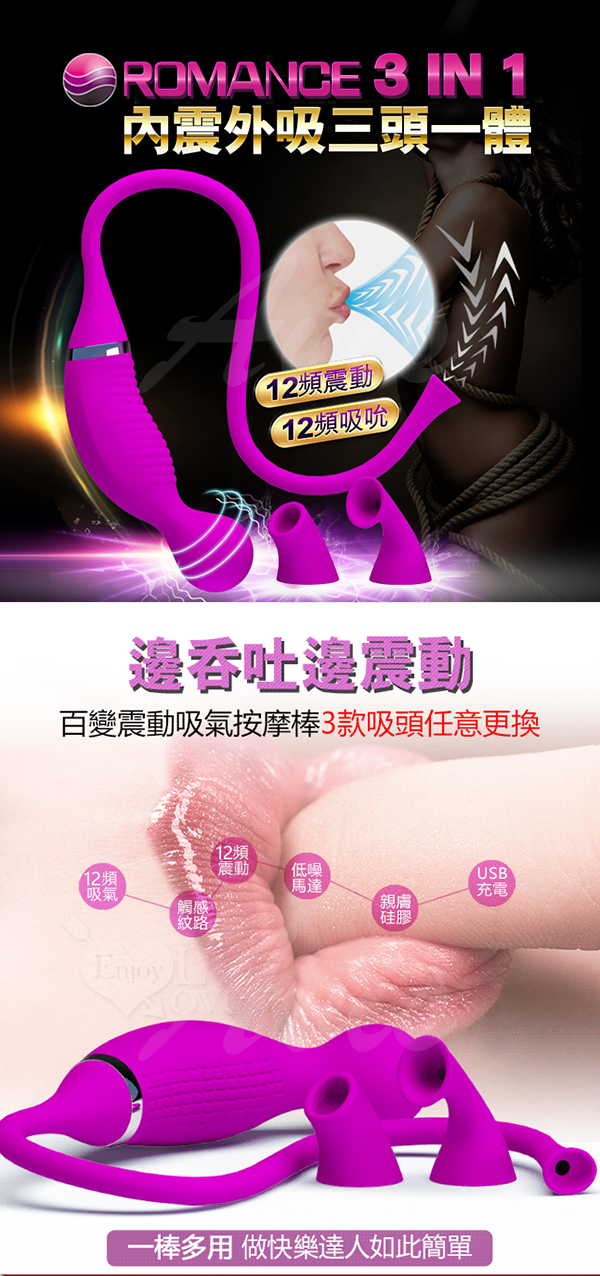 .商品內容:ROMANCE 3IN1 12段變頻吞吐震動 吸氣按摩棒套裝 (強震+密覆吸氣)