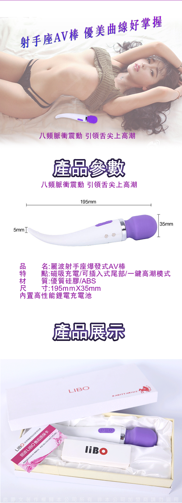 .商品內容:射手座 一棒兩用  8頻 AV女優按摩棒 雙頭龍 紫 硬款
