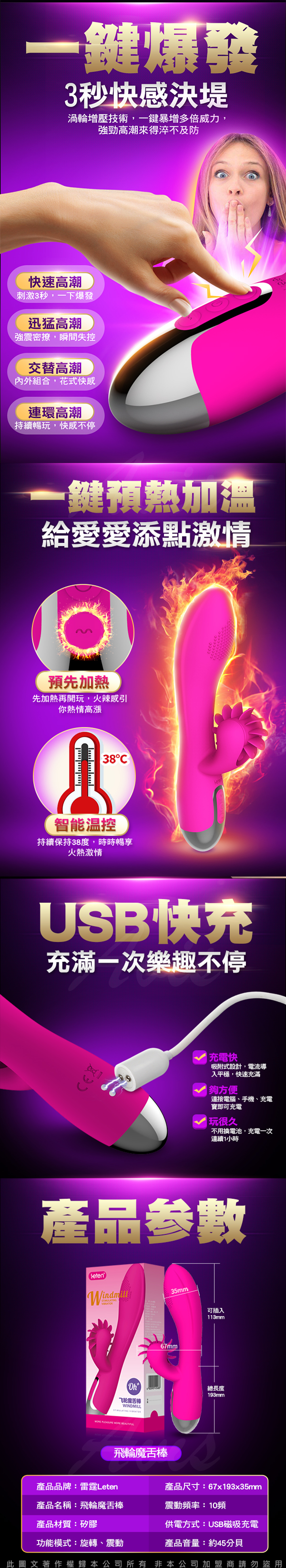 .主商品:LETEN 飛輪魔舌 加溫顆粒頭部 自動旋轉按摩棒