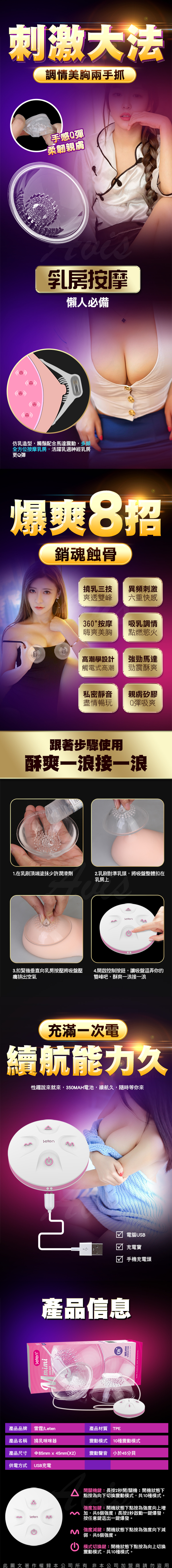 .商品名稱:LETEN MIMI 強震撓乳 10段變頻 乳房按摩器