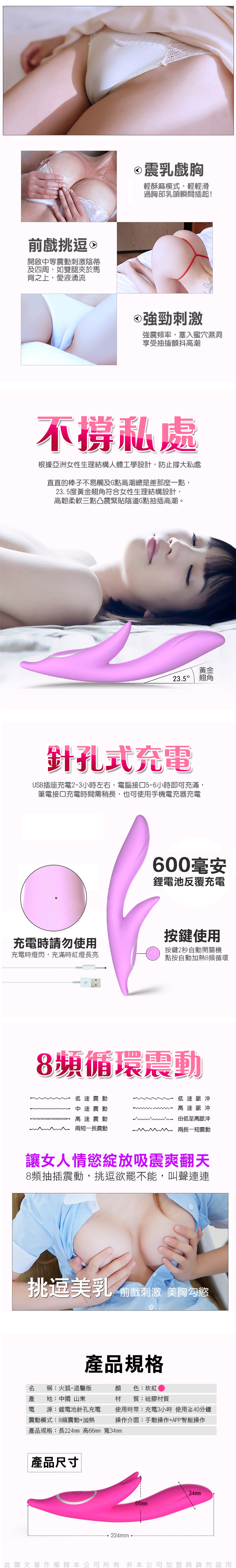 .商品名稱:火狐 8頻 抽插+夾震+智能加溫 女用自慰震動棒 溫馨版