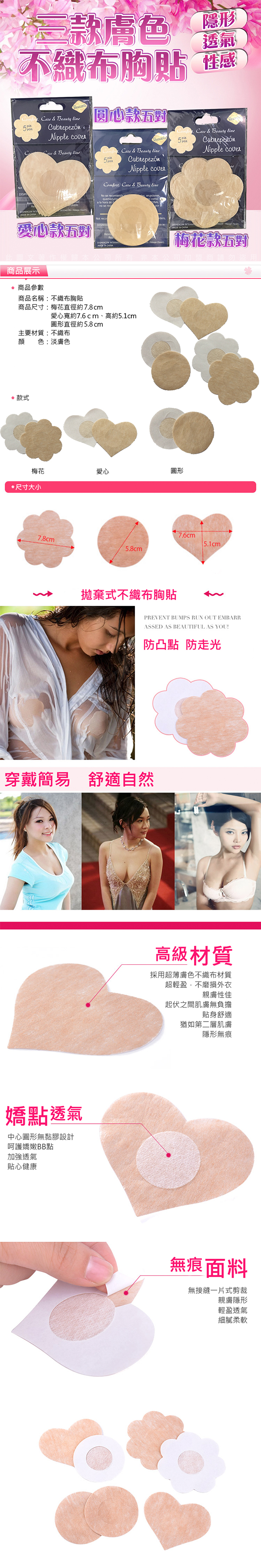 .主商品:不織布圓形隱形胸貼
