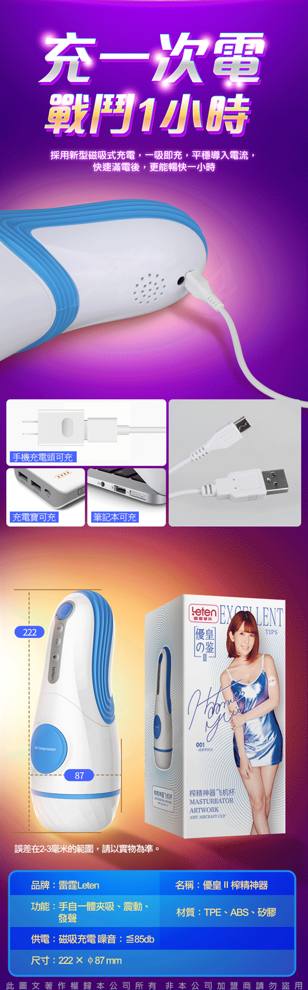 .主商品:LETEN 優皇Ⅱ 2代 榨精神器 3檔7段變頻叫床互動飛機杯