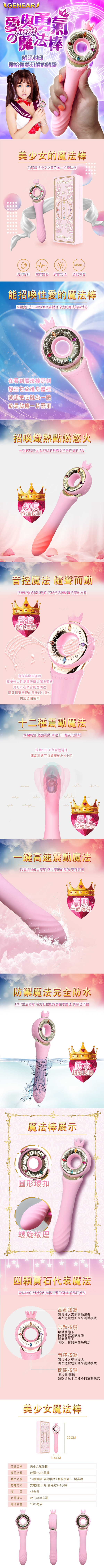 主商品:美少女魔法棒 12段變頻+智能加溫+聲控+一鍵爆發 健康按摩器-Courage勇氣
