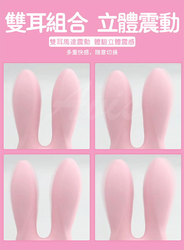 雙子座GEMINI強震雙耳萌兔跳蛋,可愛柔軟的兔耳角度可隨意彎折,哪裡敏感就刺激哪裡。雙耳內置馬達共10種震動頻率供您選擇,讓您享受到雙耳組合多重快感!而此款採用細膩親膚矽膠,柔軟不變形讓您安心使用不怕傷害嬌嫩的肌膚。且此款為防水靜音設計,讓您輕鬆清洗盡情享受性愛的美好呦