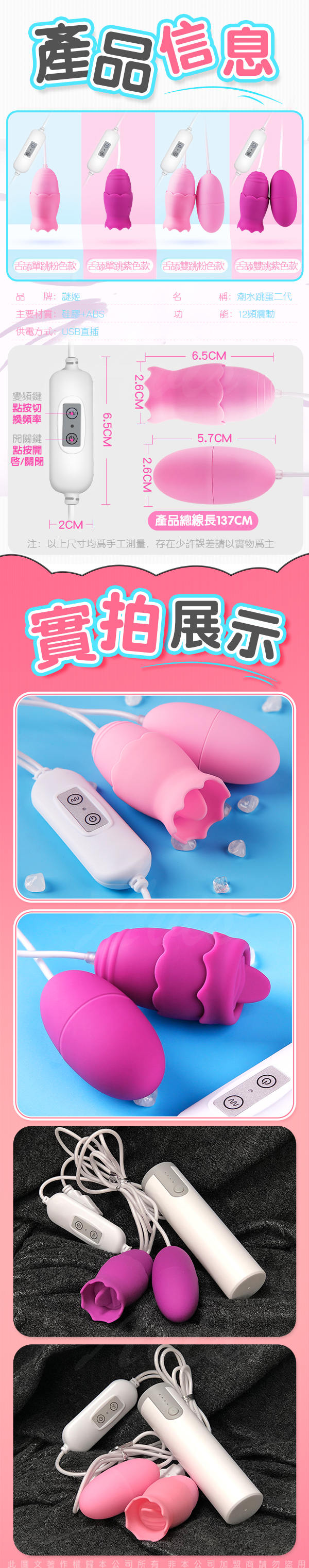 .主商品:潮水二代 舌舔+震動 12段變頻 雙跳蛋 粉