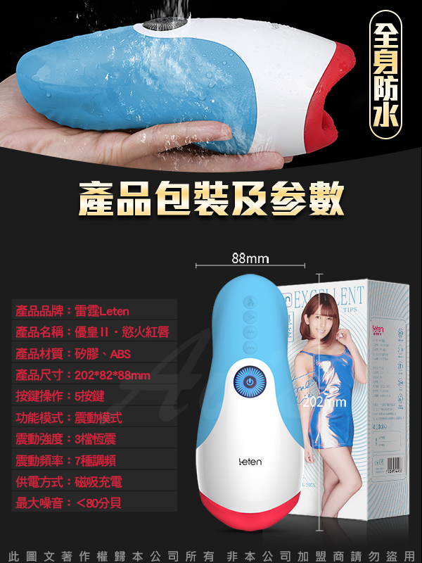.主商品:LETEN 優皇Ⅱ 2代 慾火紅唇 波多野結衣代言 智能加溫+互動發音 口交男用自慰飛機杯