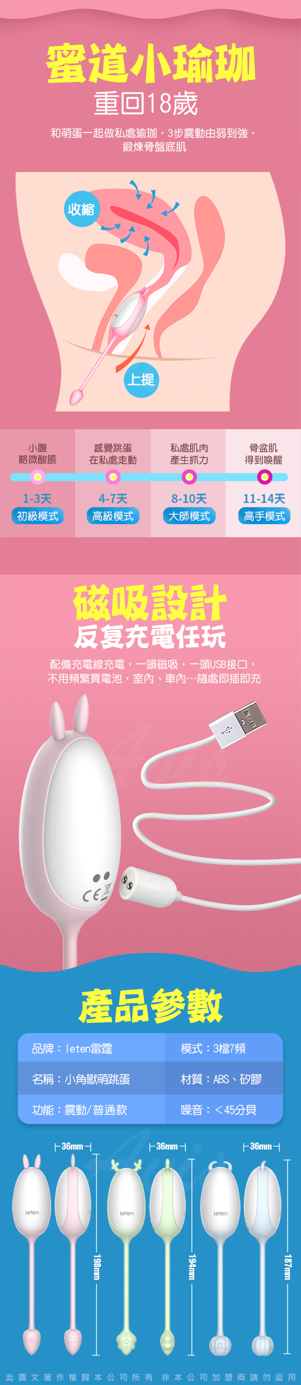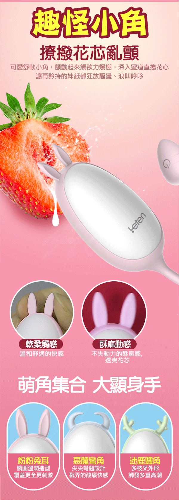 商品名稱:Leten 小角獸 3x7頻磁吸充電防水靜音萌跳蛋-小迷鹿