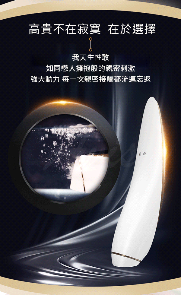 全新 Satisfyer Luxury - Haute Couture 採用超柔軟醫學級液體矽膠、黑色真皮及貴金屬精製而成,手感一試難忘。對於追求高尚生活的您,這款來自 Satisfyer Luxury Collection 的新貴必定成為您的心頭好。