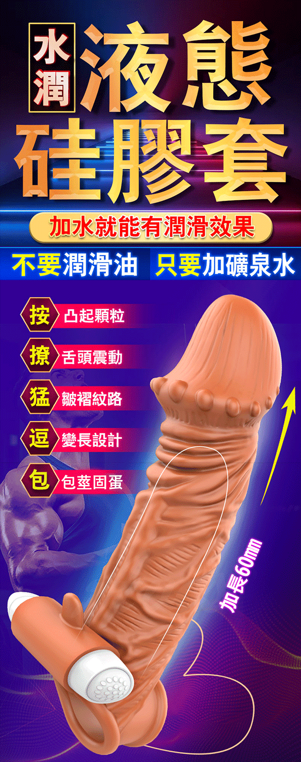 無需潤滑液的液態硅膠套,加水就潤滑,更貼合私處肌膚