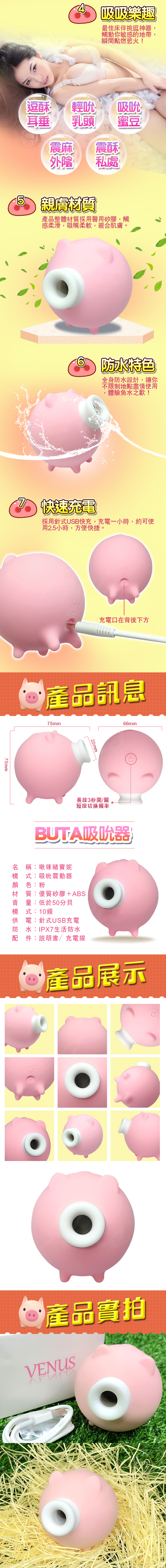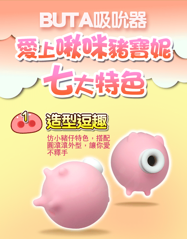 .主商品:小豬寶妮 7頻強勁吸吹+3頻震動模式 潮吹吸吮按摩器