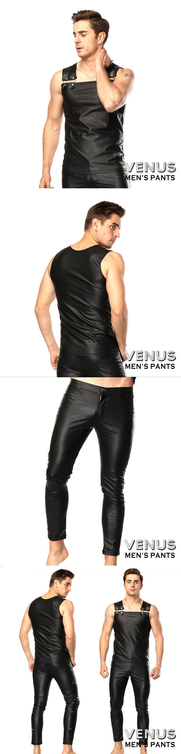 Venus 男士漆皮無袖衣+漆皮長褲 舞台表演衣 摔角衣