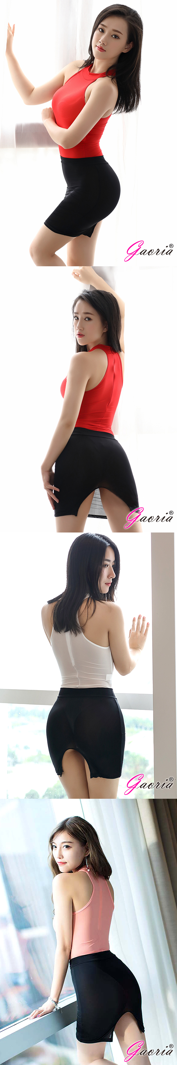 Gaoria 性感絲滑 透明後開叉緊身裙 半身裙 包裙 黑