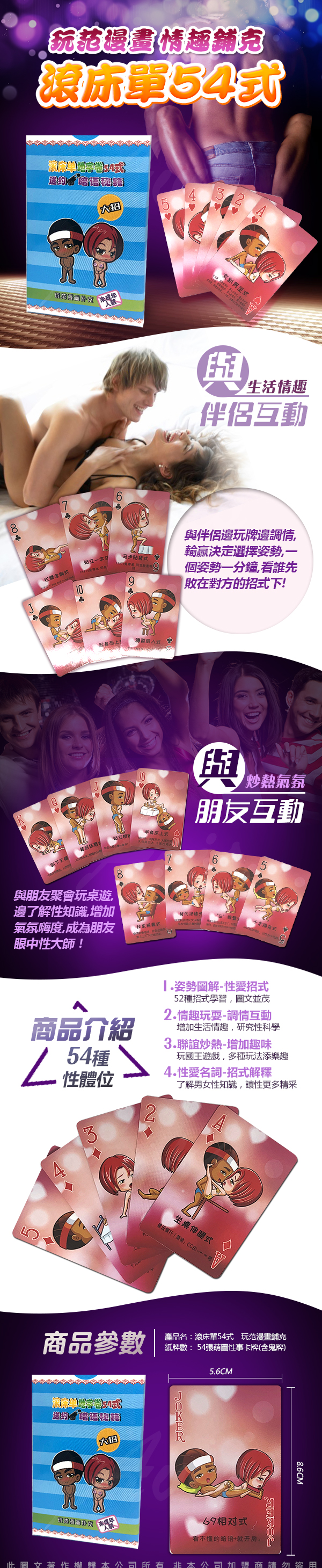 .商品名稱:滾床單54式 情趣體位撲克牌 趣味酒店遊戲 藍