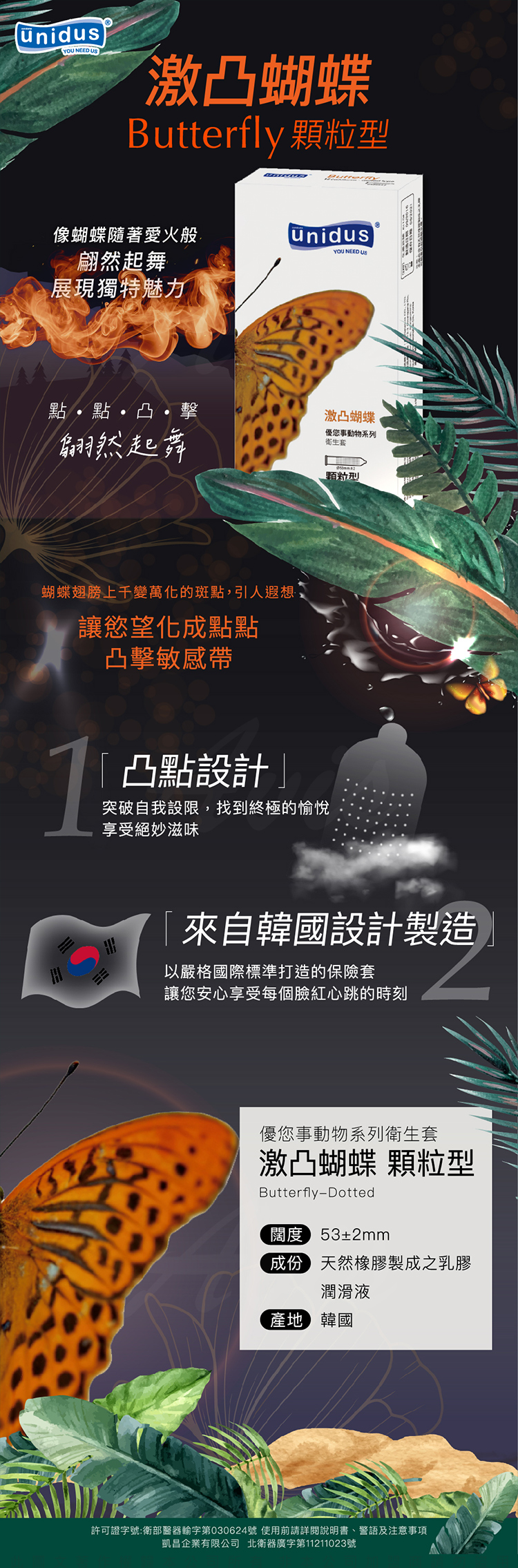 unidus優您事 動物系列保險套-激凸蝴蝶-顆粒型 12入