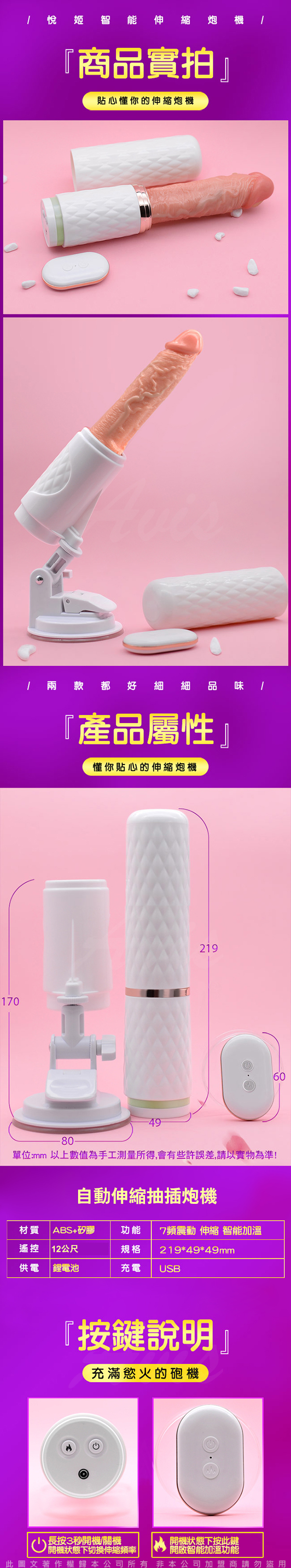 .主商品:T8仿真老二 伸縮抽插 無線遙控加溫震動炮機