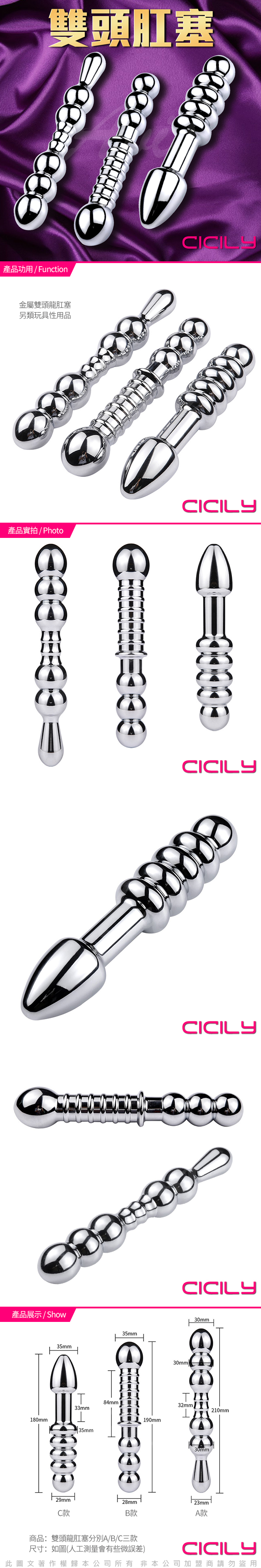 .主商品:CICILY 雙頭 金屬 拉珠後庭按摩棒 C款