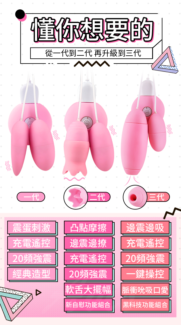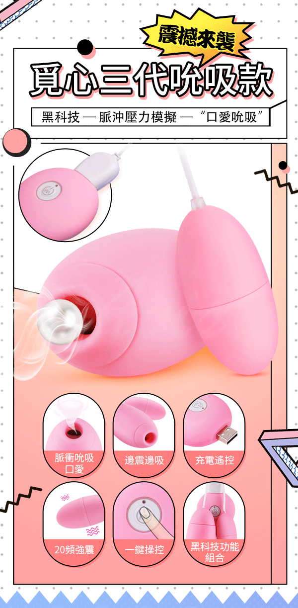 覓心 20段變頻 脈衝口愛吸吮 USB雙跳蛋(遙控款)