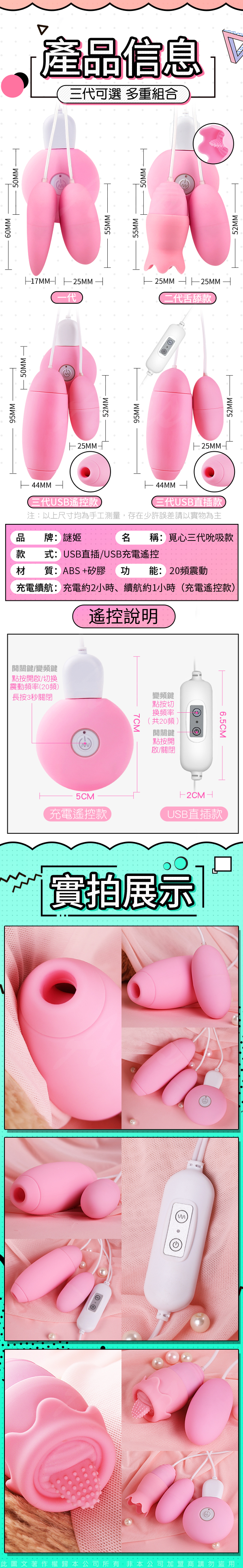 品名:覓心 20段變頻 脈衝口愛吸吮 USB雙跳蛋(遙控款)