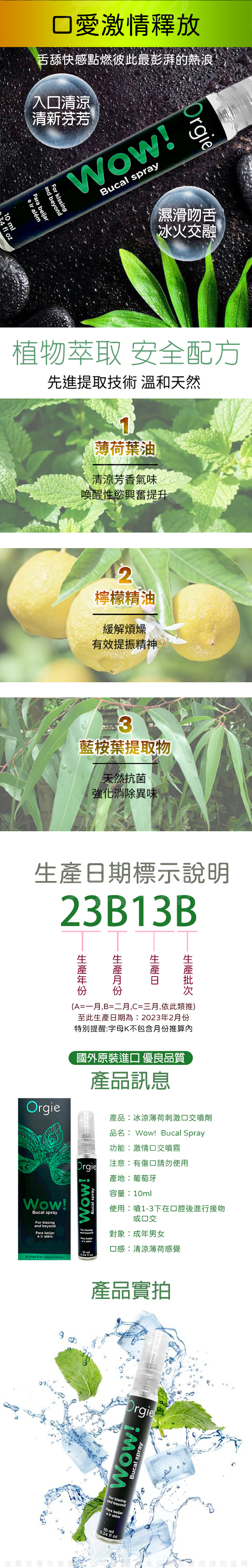.主商品:葡萄牙Orgie WOW! Blowjob Spray 口愛興奮薄荷清新噴霧-10ml